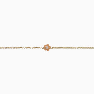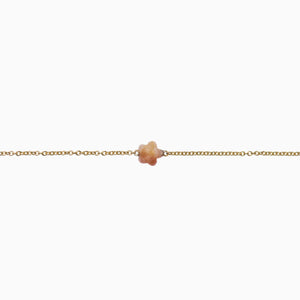 Natural elements meet modern sophistication with this line of fine jewelry. This one-of-a-kind peach pebble was collected from the mountain desert, hand carved into a flower, and adorned with a high quality diamond to highlight its complex beauty. This pebble and bracelet combination, worn alone, has a timeless appeal and can move seamlessly from day to evening. It can also be layered with other pieces. Handcrafted in New York City. Each pebble used is unique and different (color and size) and may not look exactly the same as the below.