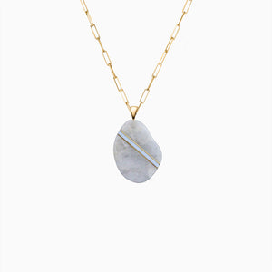 Natural elements meet modern sophistication with this line of fine jewelry. These one-of-a-kind pebbles were hand selected in nature and hand set with gold and enamel. The necklace, worn alone, has a timeless appeal and can move seamlessly from day to evening. It can also be layered with other pieces for a more dramatic effect. Shown on 16-inch chain in solid 14-karat yellow gold. Handcrafted in New York City.
