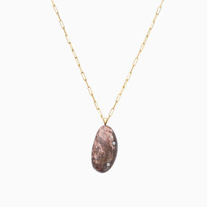 Natural elements meet modern sophistication with this line of fine jewelry. This one-of-a-kind pebble was hand selected in nature and adorned with high quality diamonds to showcase its complex beauty. This pendant, worn alone, has a timeless appeal and can move seamlessly from day to evening. It can also be layered with other pieces for a more dramatic effect. Pendant shown on 16-inch paperclip style chain in solid 14-karat yellow gold. Handcrafted in New York City.
